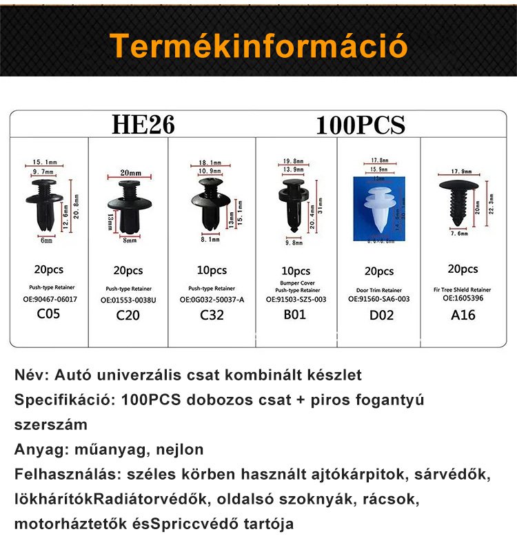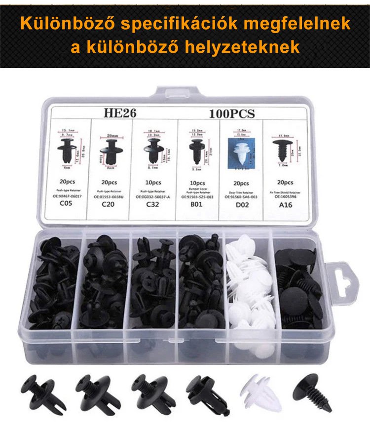 Autó univerzális csat kombinált készlet teljes tartalma